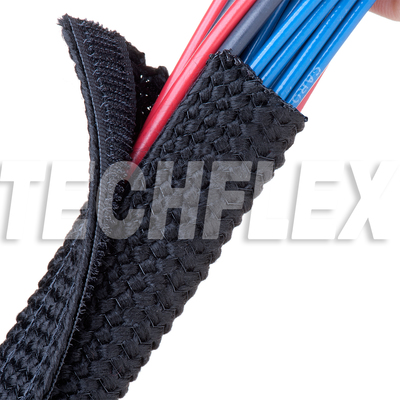 GRIP WRAP is a lightweight, abrasion resistant sleeving with a unique hook sealing system. The sleeving allows easy access for inspection, rework or replacement of components. GRIP WRAP provides cut-through and abrasion protection, and is easily applied to areas restricted by breakouts and large end fittings.